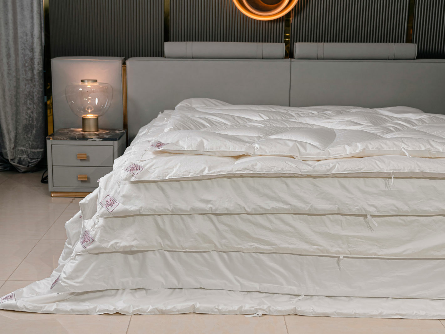 Наполнитель: 100% белый гусиный пух высшего качества, с повышенным коэффициентом упругости (Fill Power), не менее 850ед.