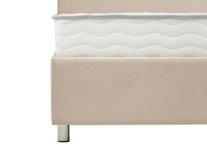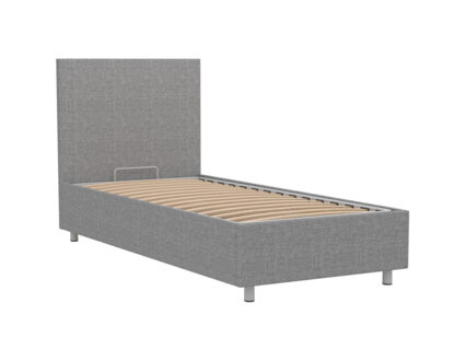 Кровать оснащена основанием с подъемным механизмом, под которым располагается бельевой ящик глубиной 16 см. Рекомендуемая высота матраса от 13 см, вес матраса до 50 кг. Чехлы на царгах несъемные. Высота/толщина царг: 28 см / 4 см (средняя), 2 см - (боковые).