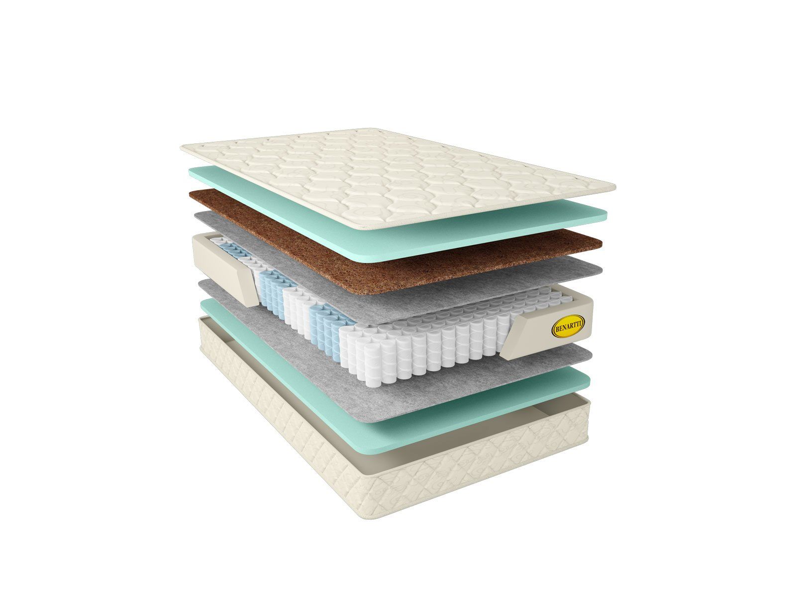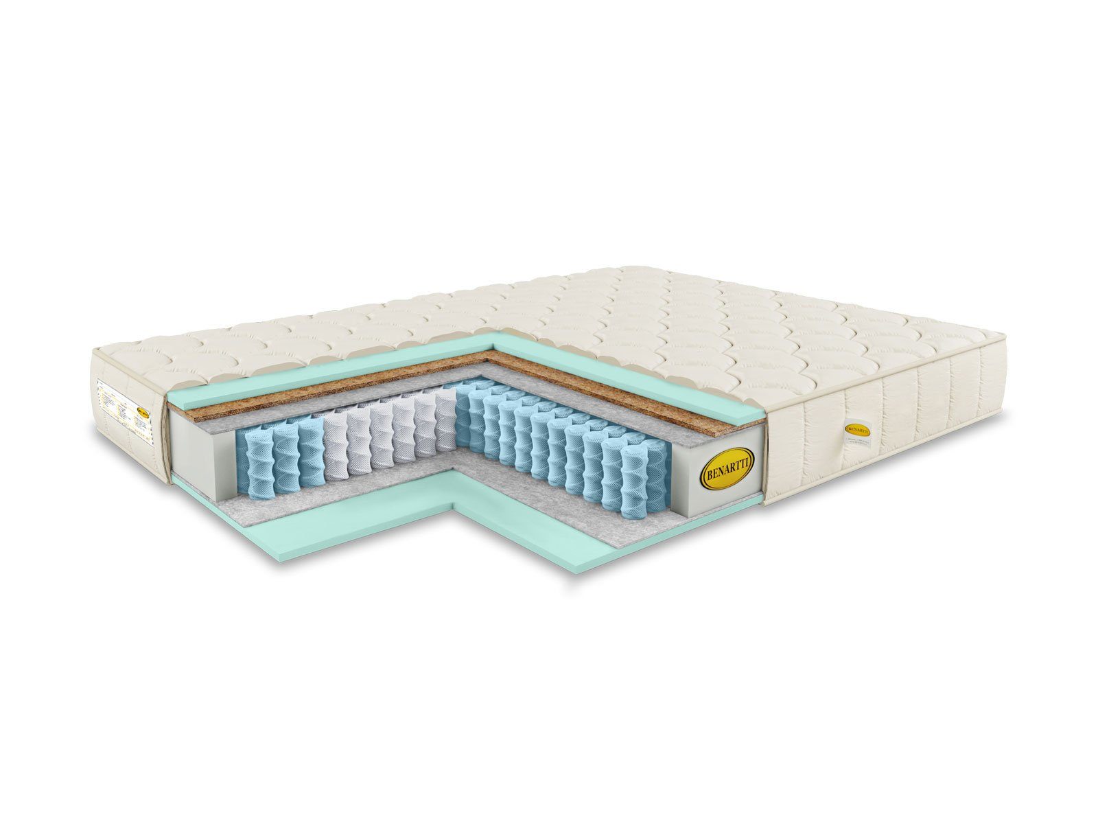 Сверху матрас обеспечен сочетанием искусственного латекса и кокосовой койры, а снизу проложен более толстым слоем одного лишь искусственного латекса. Это даёт различную жёсткость поверхностей. И койра, и пена – это очень гигиеничные наполнители, которые не требуют какого-либо специального ухода. Сами по себе материалы великолепно пропускают воздух, а, чтобы усилить эффект вентиляции, производитель предусмотрел боковые аэраторы. Таким образом матрас поддерживает здоровый и свежий микроклимат.
