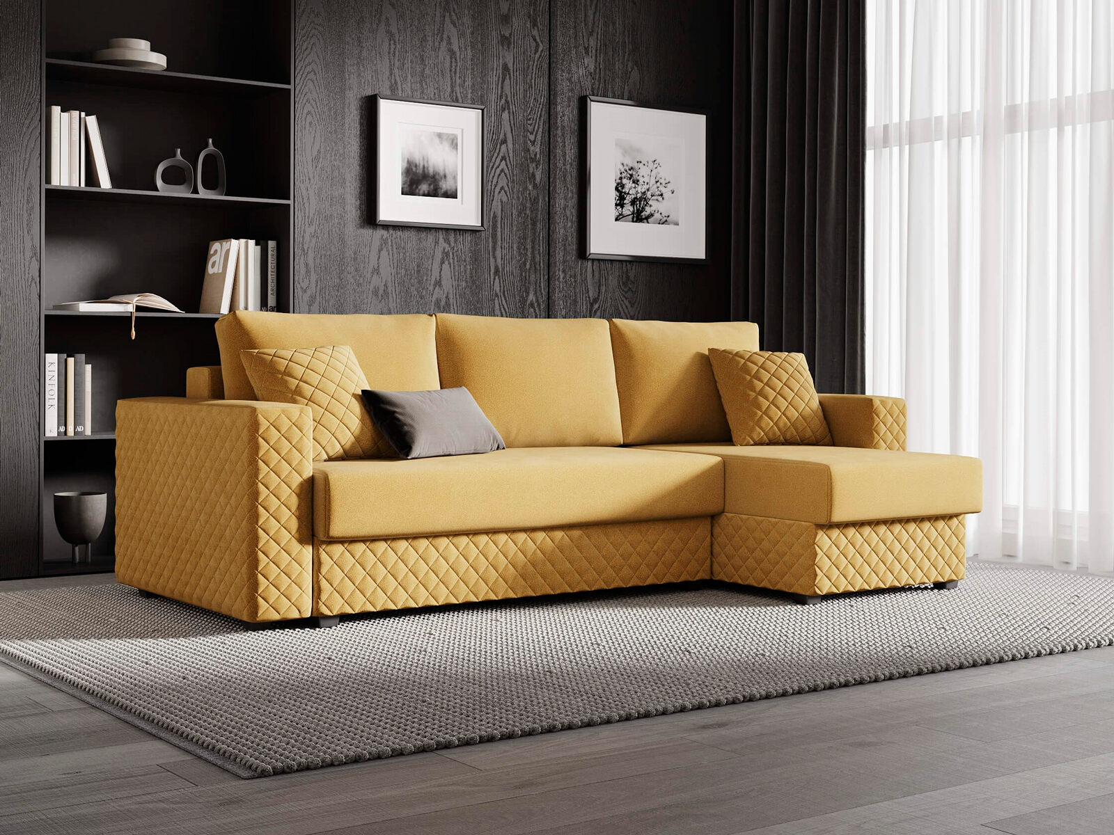 Диван оснащён современным механизмом трансформации пантограф, который обеспечивает лёгкость и удобство в использовании. В его основе лежит ортопедический матрас с независимым пружинным блоком, что гарантирует комфортный отдых и здоровый сон. Удобная глубина и высота сидения способствуют повседневному комфорту, позволяя расслабиться после долгого дня. Декоративная стёжка на подлокотниках и цоколе подчёркивает строгие, геометрические формы дивана, придавая ему стильный и современный вид. Задняя спинка дивана защищает от прикосновения со стеной во время сна, а также предотвращает возможные повреждения и загрязнения стен. В угловой секции (оттоманка) предусмотрено удобное место для хранения, что позволяет рационально использовать пространство. В комплект дивана входят две стёганные декоративные подушки, которые дополняют его внешний вид и обеспечивают комфорт. При сборке вы можете самостоятельно выбрать, с какой стороны будет расположен угол — справа или слева.