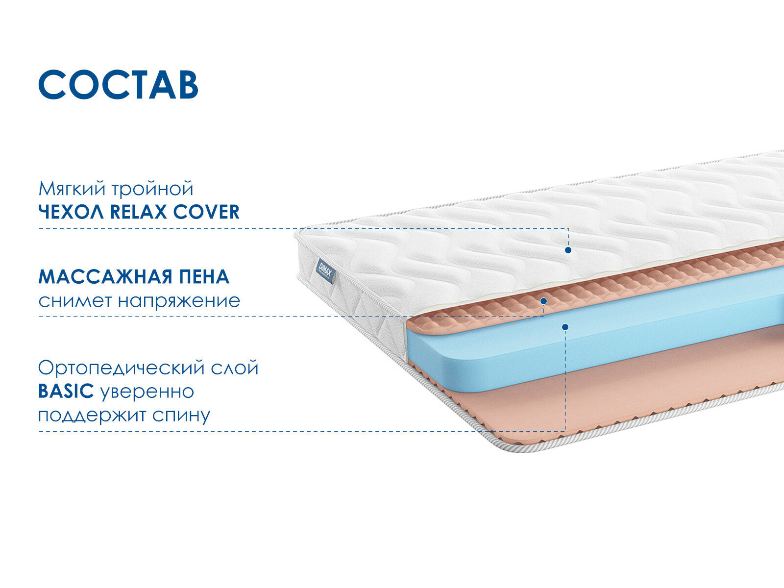 Массажный матрас Димакс Relmas Foam Roll – это удачное сочетание комфорта, практичности и универсальной средней жёсткости. Благодаря беспружинному наполнению модель подойдёт для интенсивных нагрузок и разным сезонам.