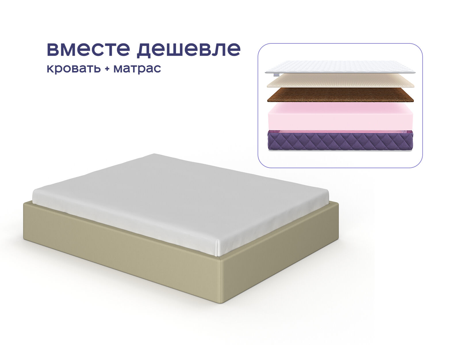 Комплект Риос + Базилик Фреш 21 Кокос Массаж — гармония лаконичного дизайна и инновационного комфорта. Кровать без изголовья, создающая эффект разгрузки пространства и простора, а также беспружинный матрас с массажным эффектом образуют идеальный тандем для тех, кто ценит современную эстетику, заботу о здоровье и выгодные решения. Сэкономьте до 36% от стоимости приобретая товары комплектом.