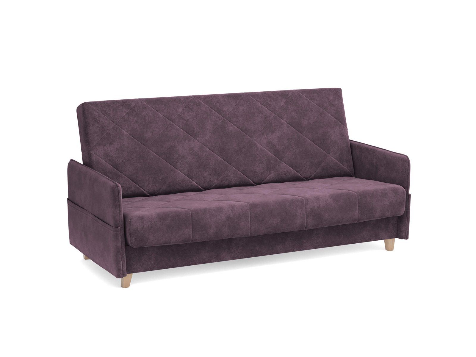 Диван для сна в скандинавском стиле с механизмом трансформации «клик-кляк» и коробом для хранения. Основание дивана металлическое, с ламелями. Матрас анатомический с независимым пружинным блоком. Благодаря съемному чехлу с объемной стежкой в форме ромбов, диван органично впишется в современные интерьеры в скандинавском стиле и стиле минимализм.