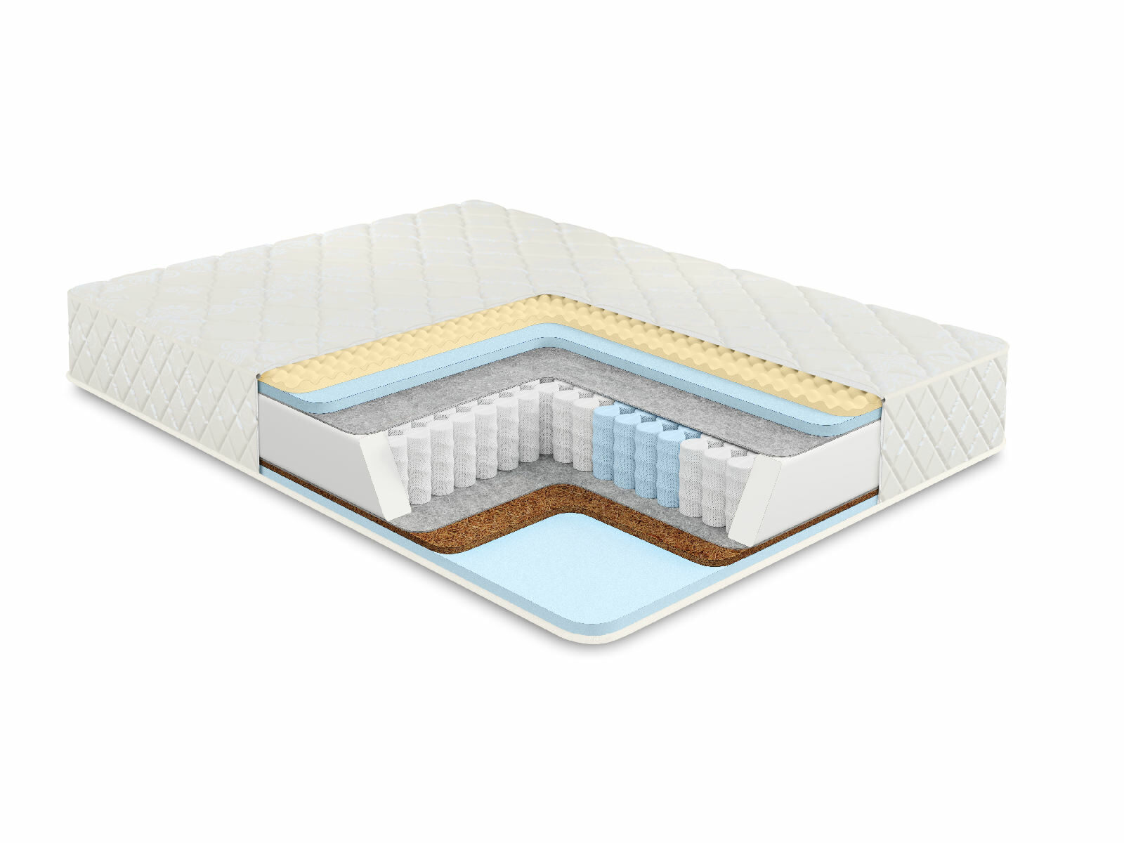 Пружинный матрас в основе которого многозональный независимый пружинный блок 512 пружин на спальное место обеспечивает ортопедическую поддержку и комфорт во время сна. Независимые пружины подстраиваются под формы человека, потому что каждая пружина находится в отдельном кармашке и обеспечивает равномерное распределение веса.