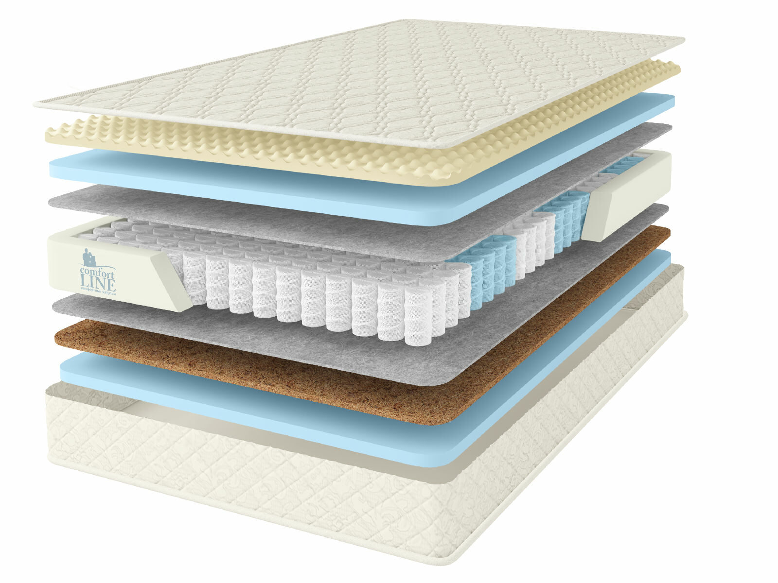 Кокосовое волокно с натуральным латексом придает жесткость, экологически чистый материал, который прекрасно вентилируется.