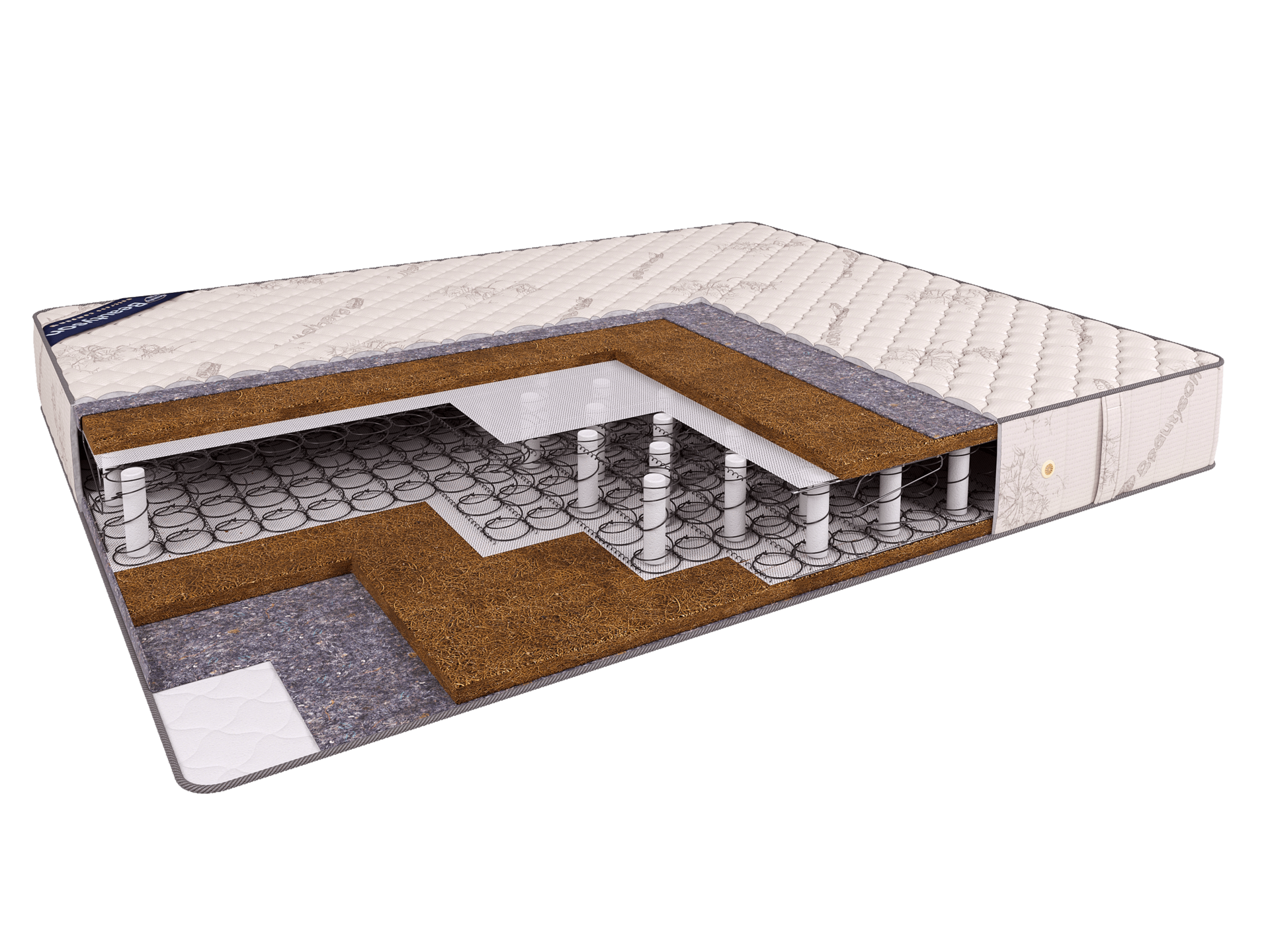 Матрас Евро Кокос выполнен на основе 3-х зонного зависимого блока пружин, усиленного в области поясницы, и натурального кокосового волокна. Данный матрас имеет симметричную конструкцию и обладает одинаковой выраженной жёсткостью обеих сторон. Латексированное кокосовое волокно не только придаёт матрасу высокую жёсткость, но и благодаря своим уникальным природным бактерицидным свойствам предотвращает появление в матрасе вредных микроорганизмов, продлевая срок его службы и надолго сохраняя гигиеническую чистоту спального места.
