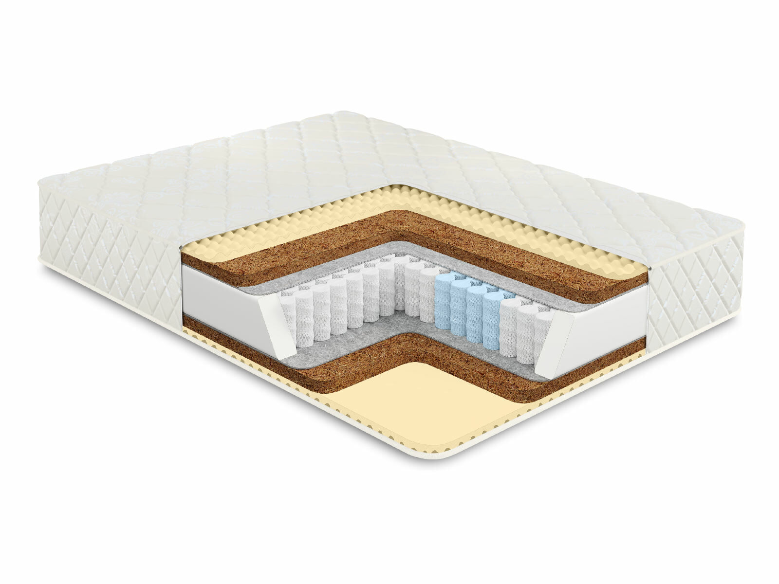 Пружинный матрас в основе которого многозональный независимый пружинный блок 512 пружин на спальное место обеспечивает ортопедическую поддержку и комфорт во время сна. Независимые пружины подстраиваются под формы человека, потому что каждая пружина находится в отдельном кармашке и обеспечивает равномерное распределение веса.