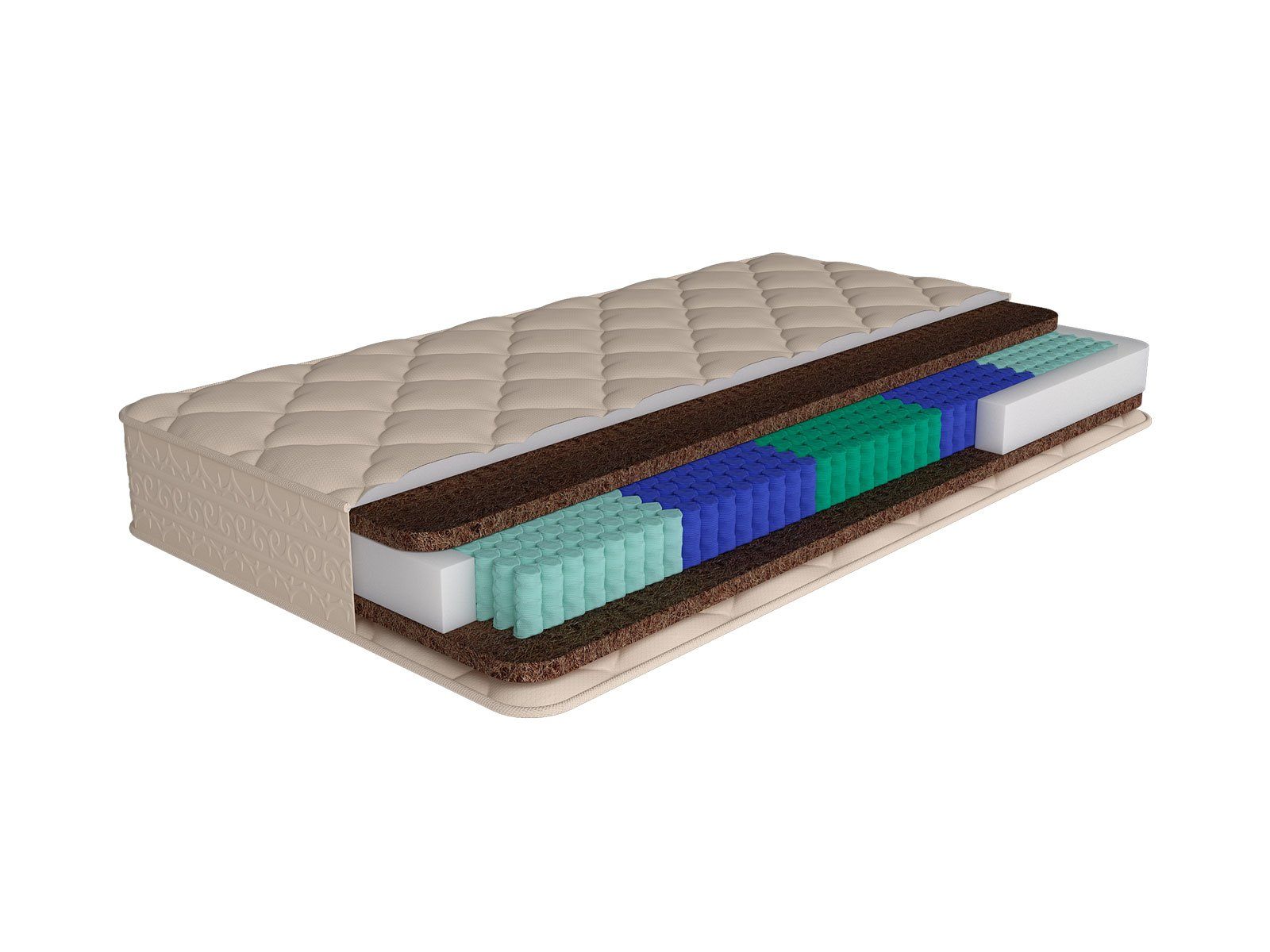 Для наполнения матраса реализована жёсткая и упругая койра кокоса. Это натуральный материал, который хорошо выдерживает большие нагрузки и формирует правильную поддержку спины.