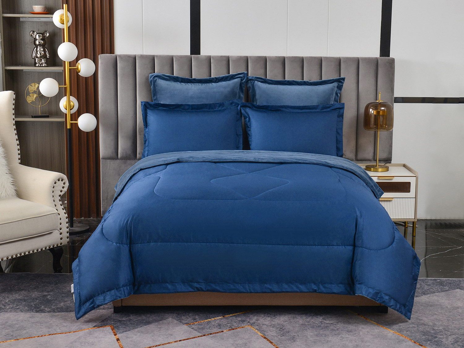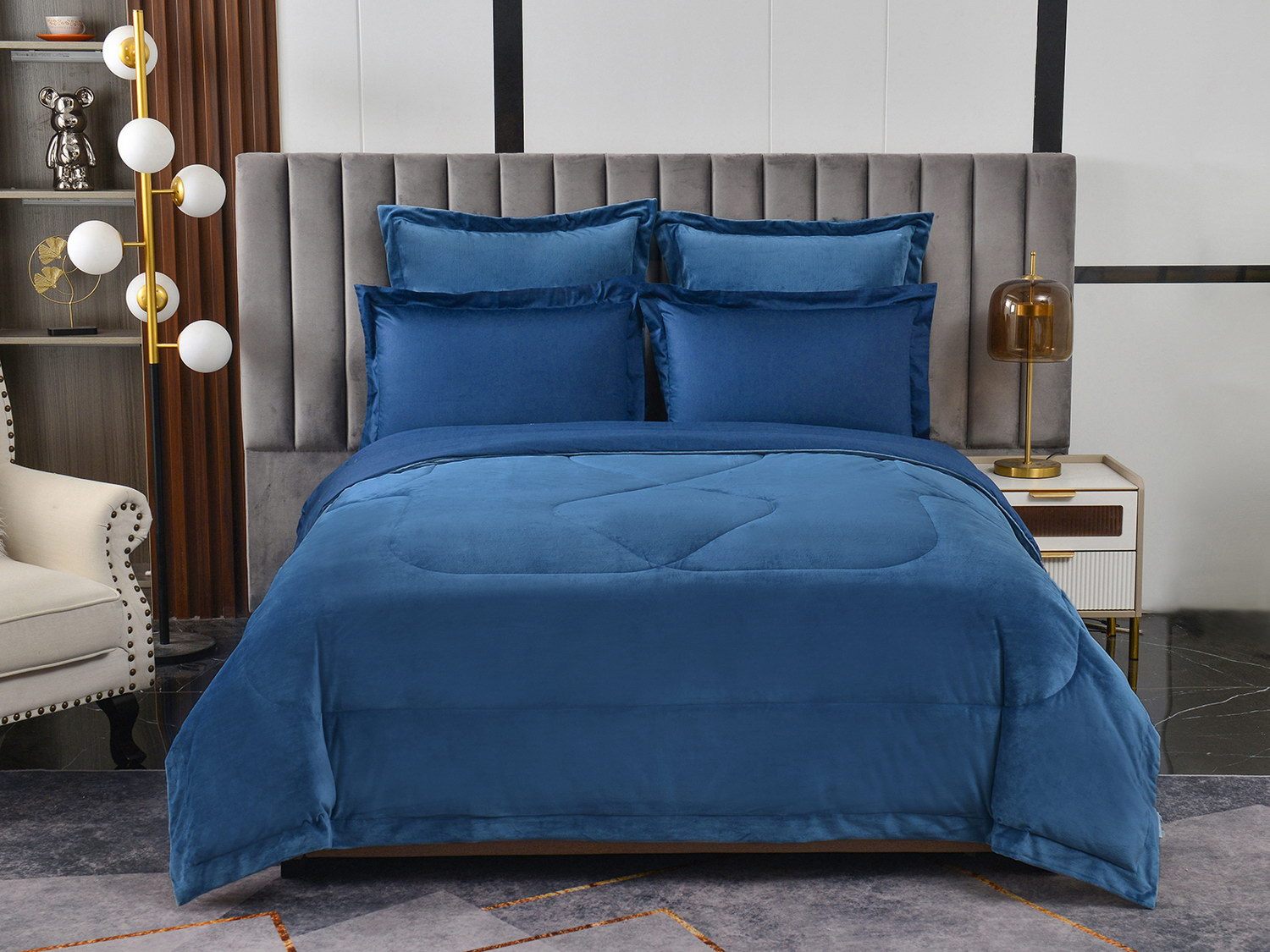 Изготовленный из качественной вискозы и мягкого хлопка трендовых цветов, комплект создаёт приятное ощущение на коже. Его экологичное наполнение из 100% эковолокна обеспечивает гипоаллергенные свойства, подарив вам спокойные и уютные ночи.
