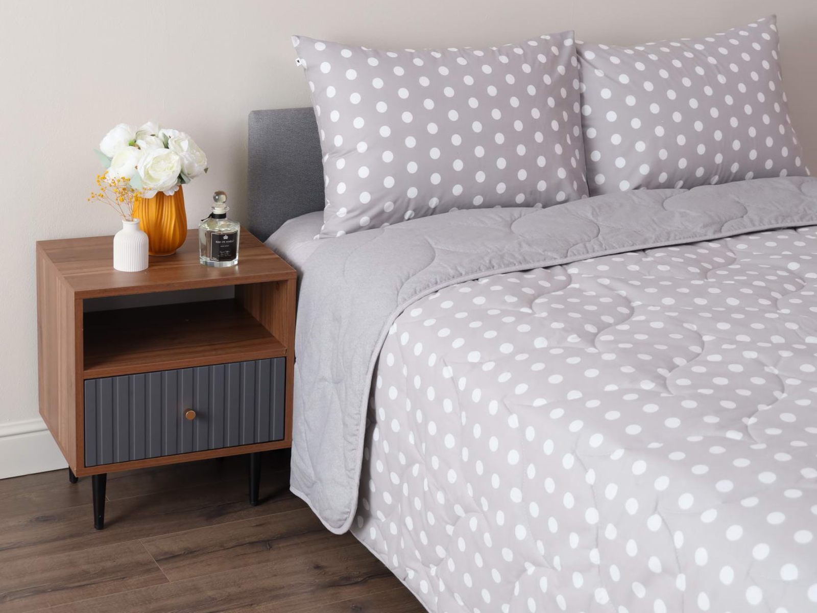 Комплект Мелвин легко стирается в обычной машине в бережном режиме и также легко гладится.