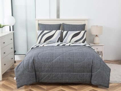 В комплект входит легкое, мягкое, летнее одеяло. Его можно стирать вместе с другим бельем, оно быстро сохнет и после стирки его не нужно гладить.