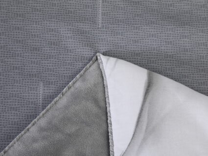 Обратная сторона одеяла – принтованный сатин натуральный хлопковый материал. На ощупь нежная и шелковистая, при этом комфортная и прочная ткань.