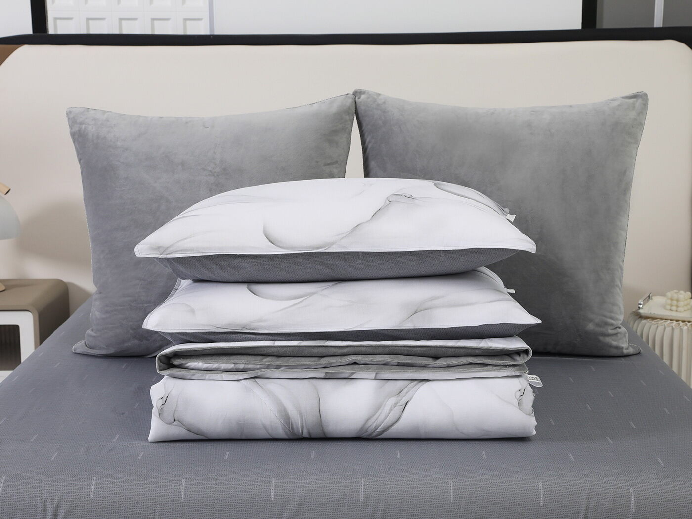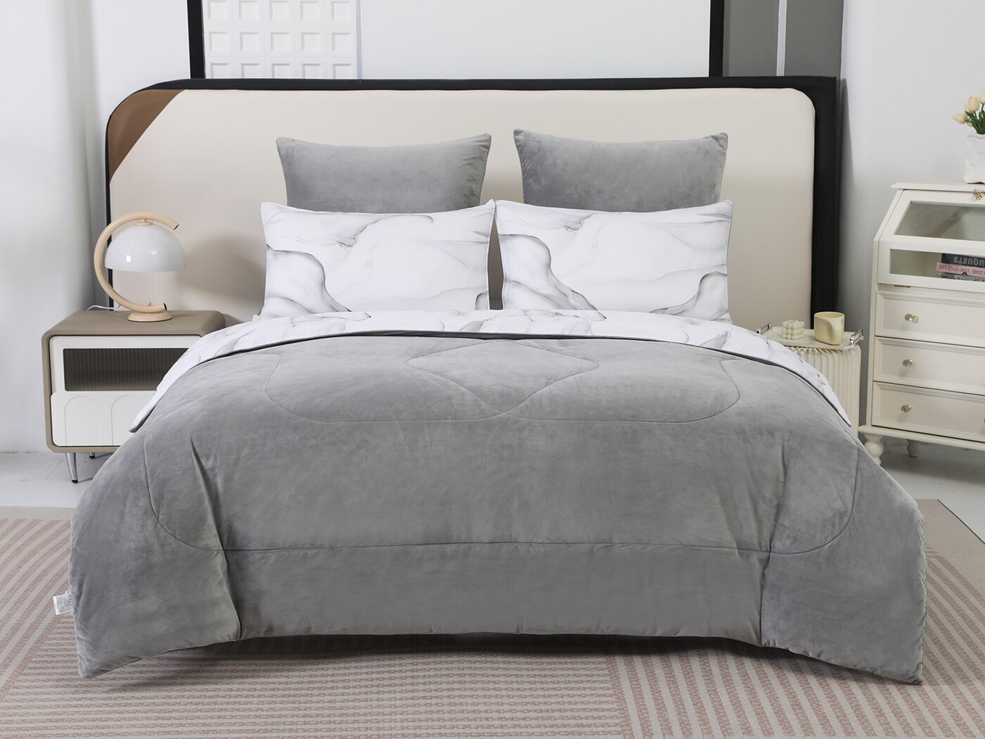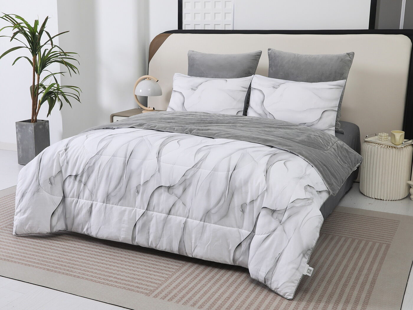 Новая коллекция комплектов «Роберто» с одеялом из однотонного велюра и принтованного сатина.