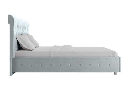 Для обивки кровати используется велюр – мягкий и бархатный материал, который дарит очень нежные соприкосновения. При стандартной комплектации обратная сторона изголовья выполняется из технического материала. Однако по желанию его можно заменить на основную обивку кровати.