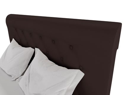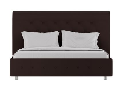 Для обивки кровати используется экокожа, которая легко чистится и максимально напоминает натуральную кожу. При стандартной комплектации обратная сторона изголовья выполняется из технического материала. Однако по желанию его можно заменить на основную обивку кровати.