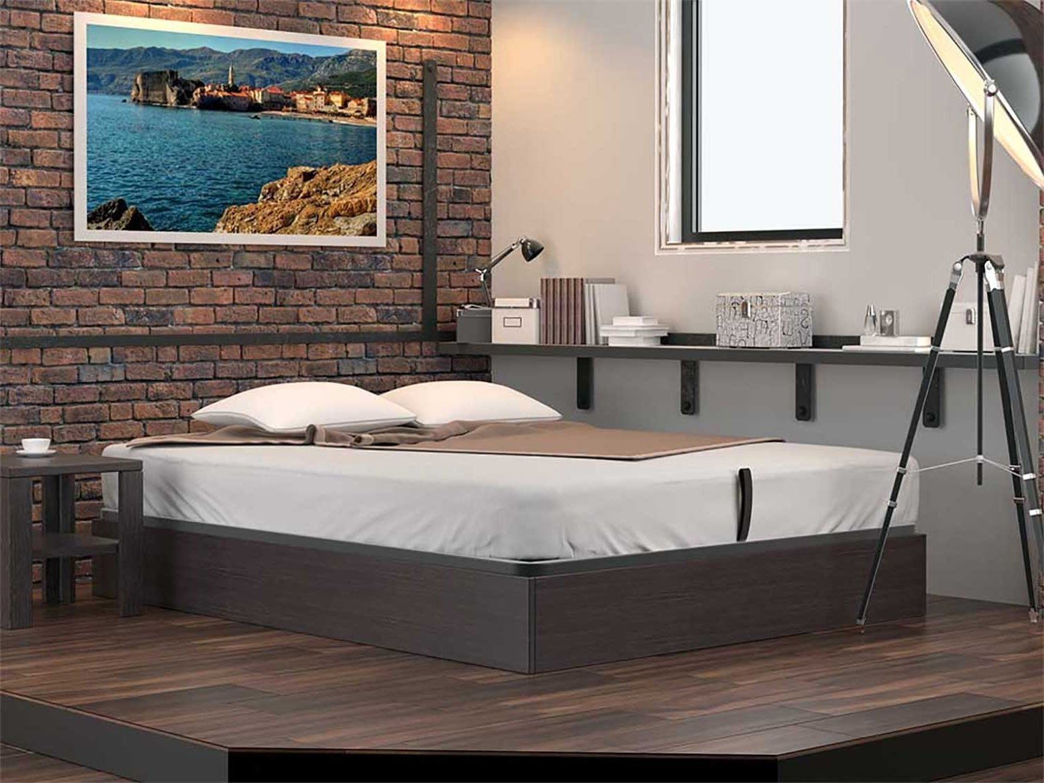Кровать Куб представляет собой металлическое основание с ламелями из березового шпона и ящик для белья, которые соединены специальным механизмом подъема, который рассчитан под вес матраса. Стандартно предусмотрено основание Dream. Требуется сборка.