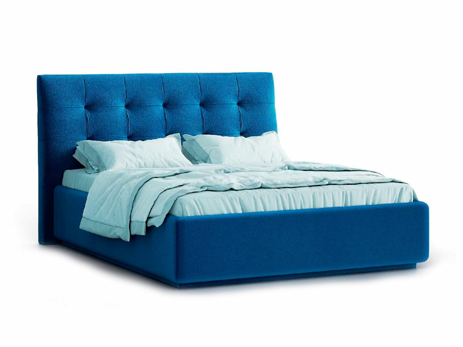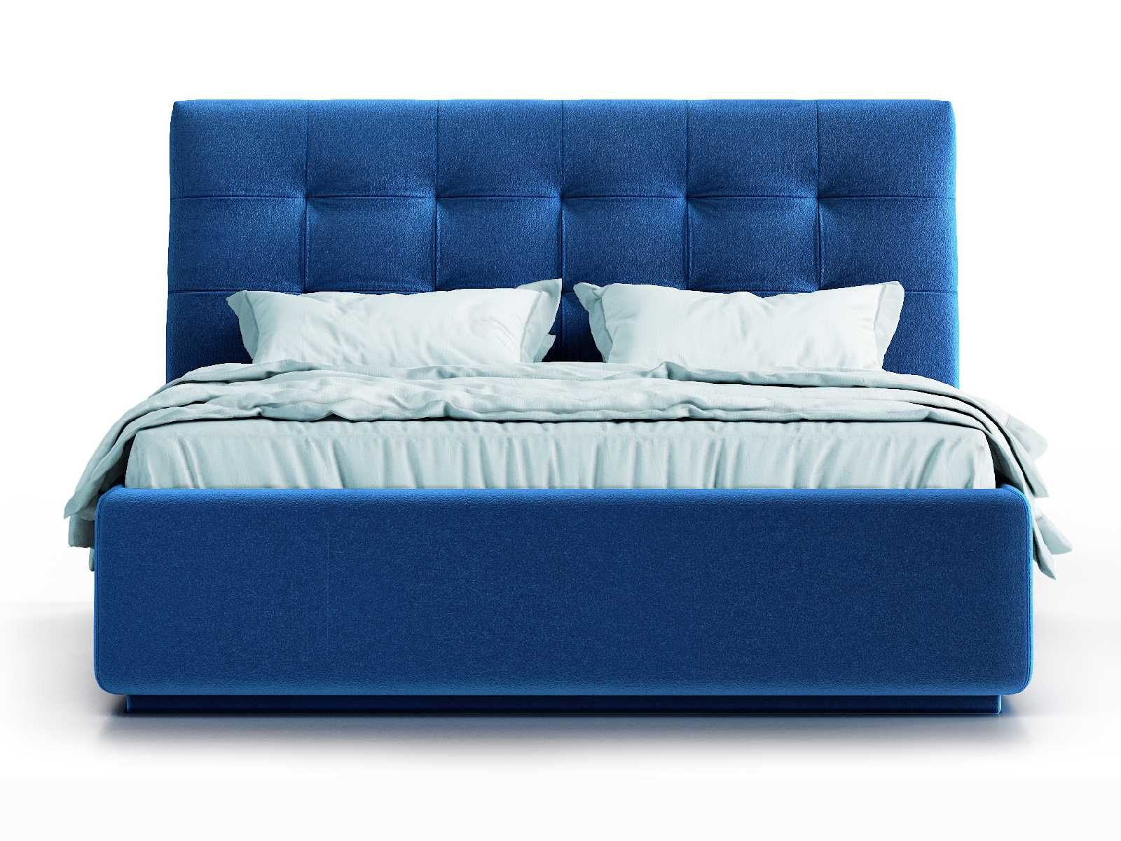 Кровать укомплектована IQ с подъемным механизмом и ящиком для белья без дна (дополнительная платная опция - дно к ящику IQ из HDF (ХДФ). Каркас кровати на цоколе, декоративный чехол на цоколе съёмный. Глубина ящика для белья - 30 см, без ограничения нагрузки на ящик.