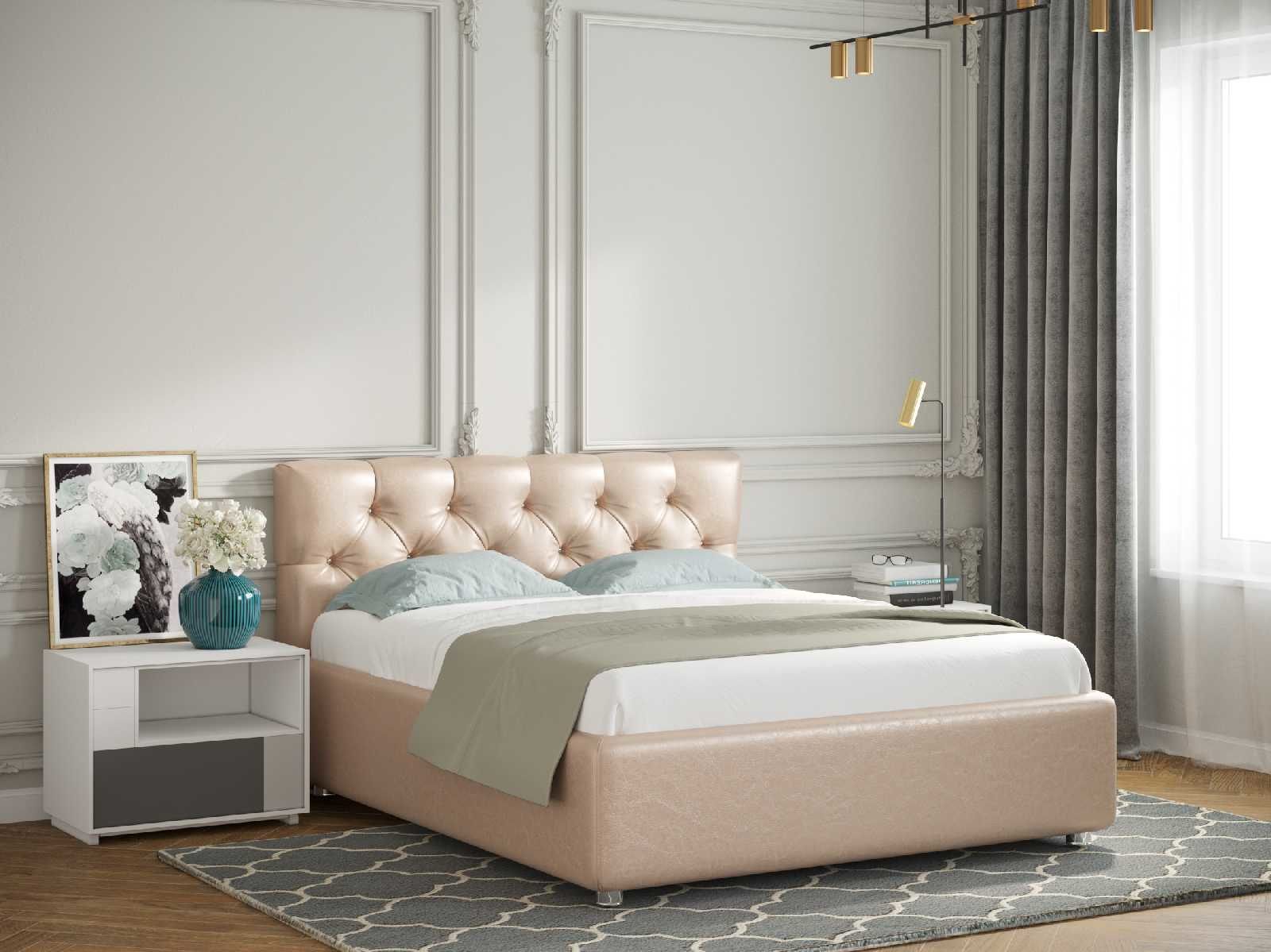 Великолепная кровать Rimini с каретной стяжкой изголовья — незаурядная классика для утонченных натур. По желанию покупателя изголовье кровати может быть украшено декоративными пуговицами или стразами (приобретается отдельно).