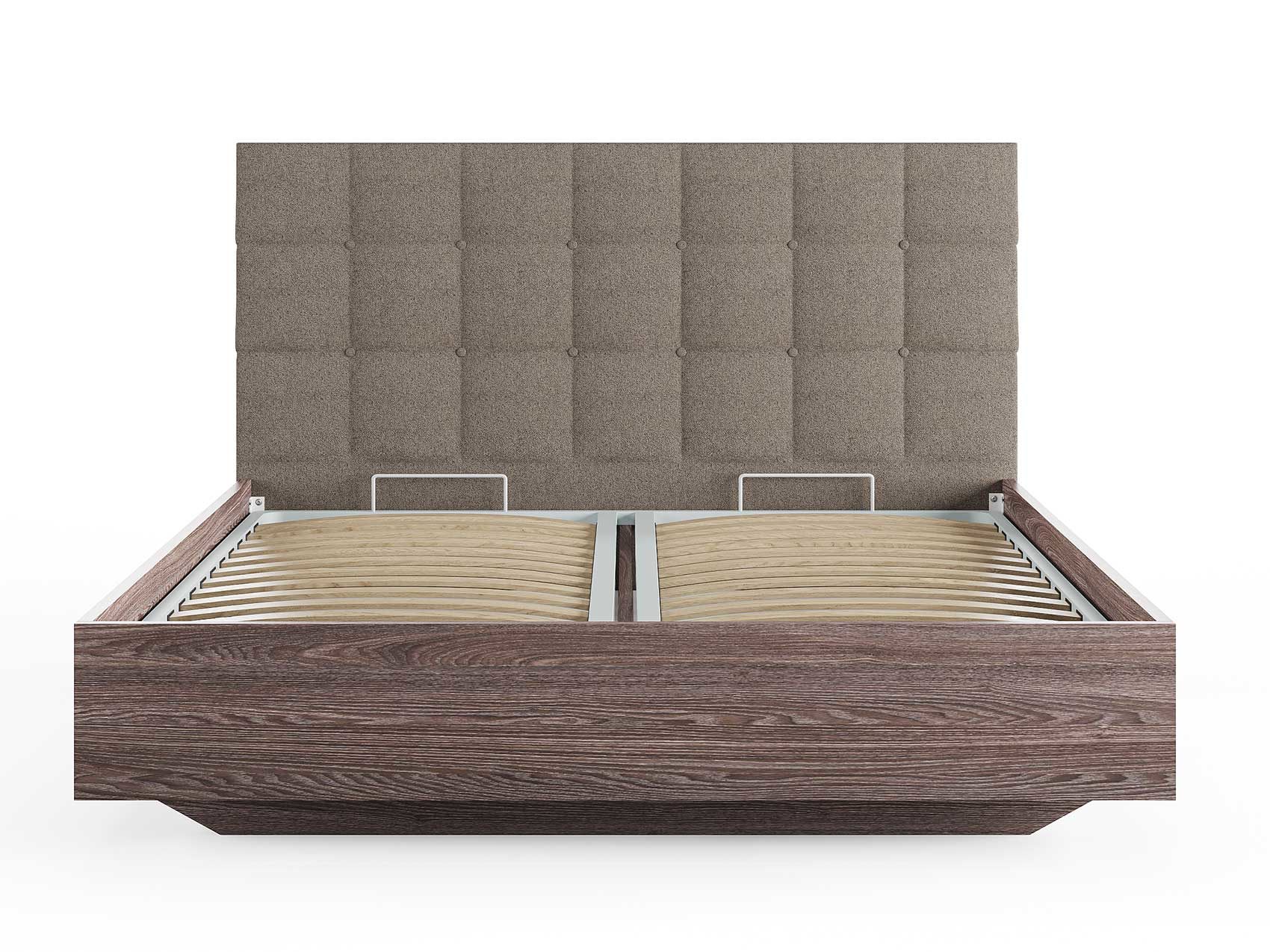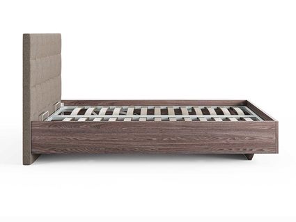 Кровать комплектуется металлическим основанием и подъемным механизмом со вместительным бельевым ящиком. Дно бельевого ящика легко сдвигается для обеспечения уборки под кроватью.