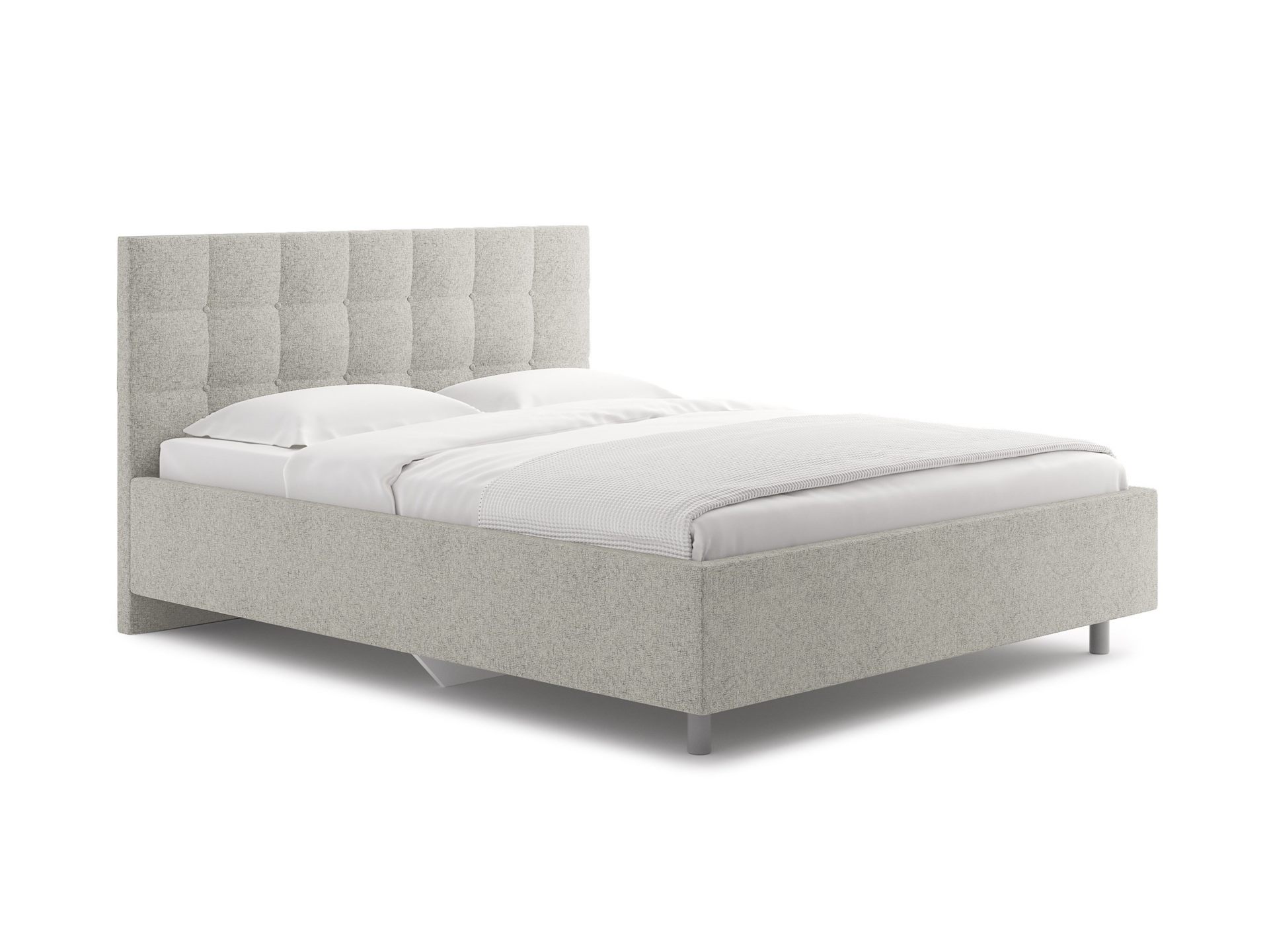 Элегантная интерьерная кровать с изголовьем, украшенным декоративными пуговицами, которые можно заменить на стразы. Модель изготовлена из ДСП.