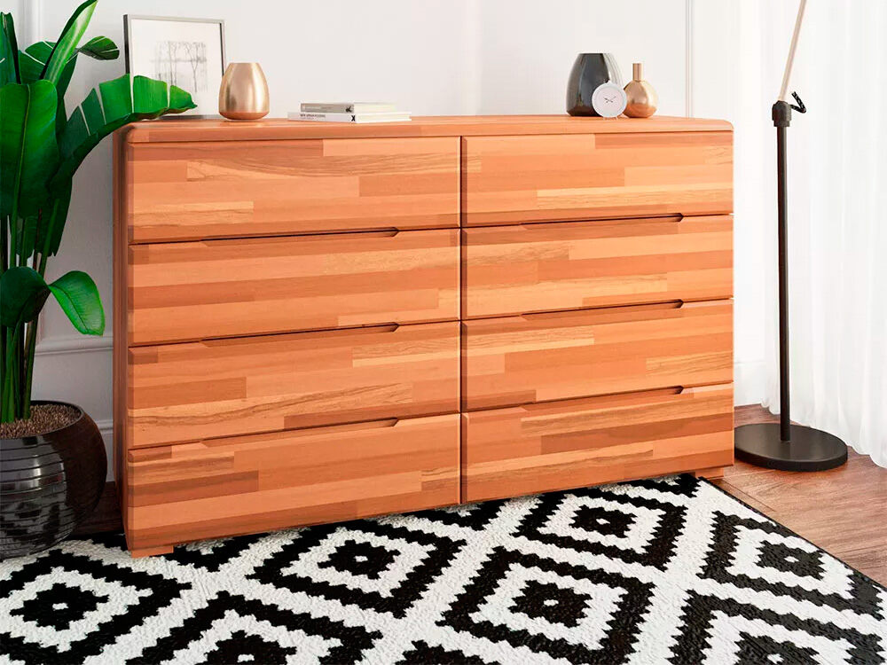 Комод выполнен полностью из массива бука. По прочности бук схож с дубом, устойчив к механическим воздействиям, а также, обладает тонким ароматом натуральных смол, которые создадут неповторимый уют и тепло к комнате.