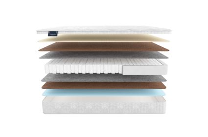 В составе модели присутствует натуральный латекс – это мягкий и эластичный наполнитель с анатомическим эффектом. В сочетании с латексированным кокосом он дает нужную поддержку спине без излишней жесткости и прекрасно поглощает влагу. Благоприятный микроклимат внутри изделия обеспечивает высокую гигиену сна.