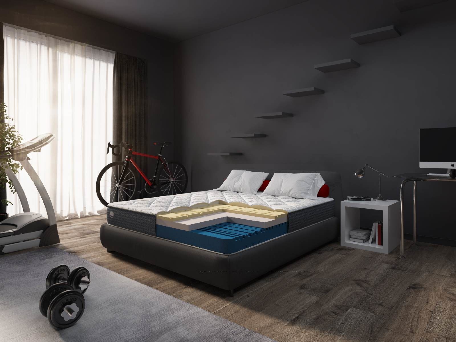 Матрас состоит из особой ортопедической пены, которая разработана специально для матрасов Alfabed. Материал принимает форму тела лежащего человека, что облегчает засыпание и смягчает движения во время сна. Оптимальная жесткость делает матрас подходящим для значительного числа людей. Основа матраса имеет множество зон, каждая из которых способствует достижению комфортного положения тела и крепкому сну.