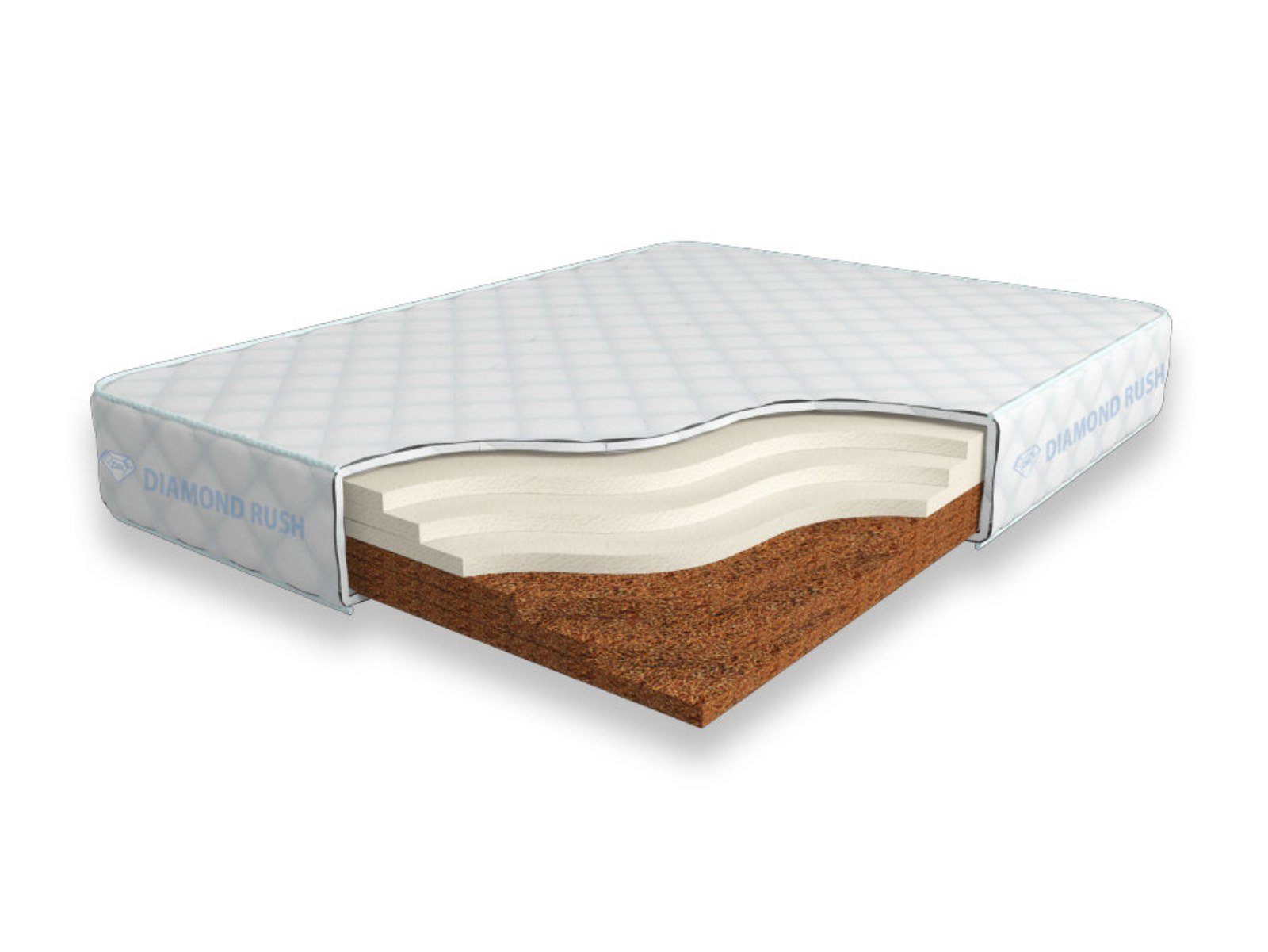 Матрас Diamond Rush Cocos Contrast 18 SD является беспружинным, т.е. не имеет в своей основе пружинного блока. Особенность этой модели в том, что она сочетает в себе одновременно среднежесткий и максимально жесткий матрасы. С одной стороны идет один или несколько слоев латексированной кокосовой койры (3см), с другой - искусственного латекса (3см).