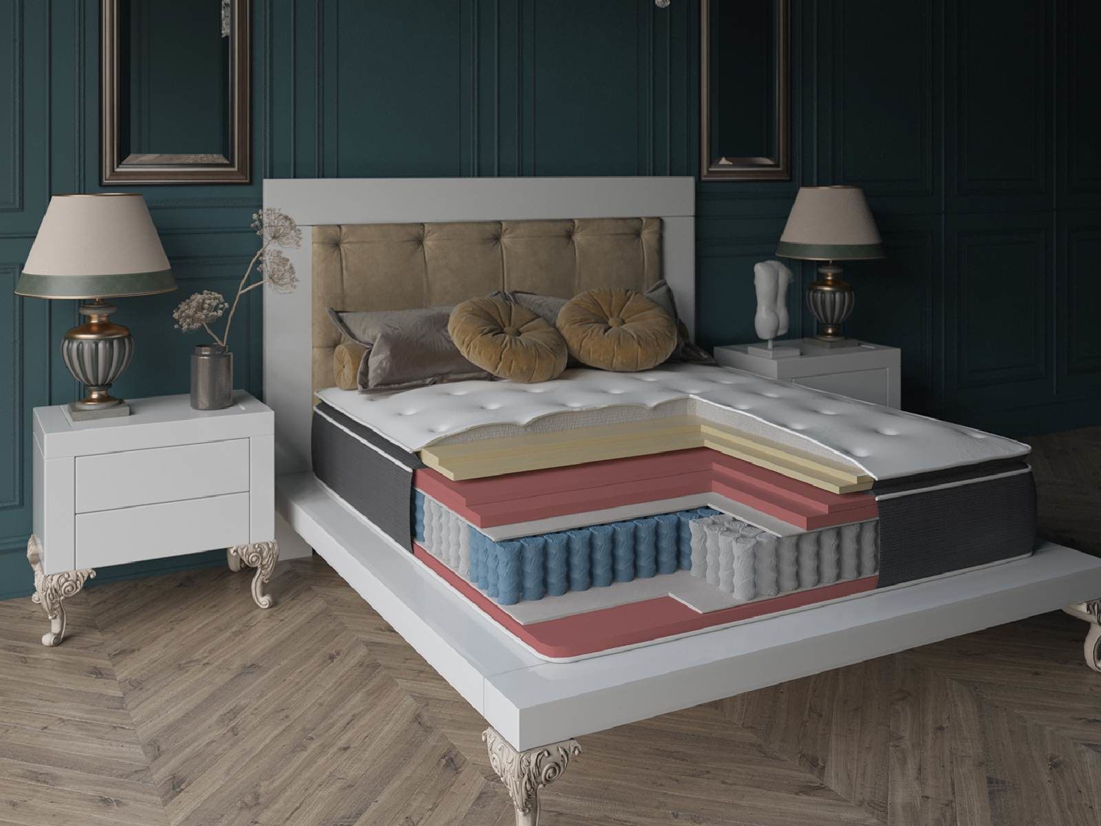1. высокий матрас с большим количеством ценных слоев, отделяющих спину от пружин;