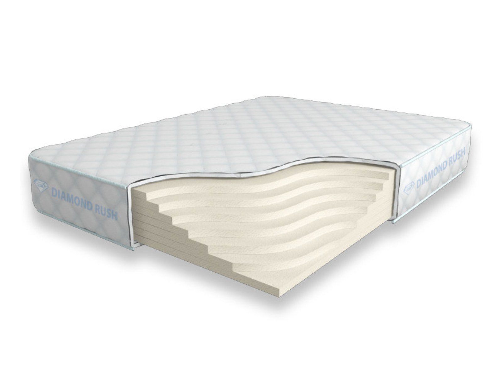 Матрас Diamond Rush Solid HR 21 SD не имеет в своей основе пружинного блока. В его состав входят один или несколько слоев износостойкого искусственного латекса. Матрас выполненный целиком из этого объемного наполнителя в меньшей степени обладает анатомическим эффектом и имеет среднюю жесткость.