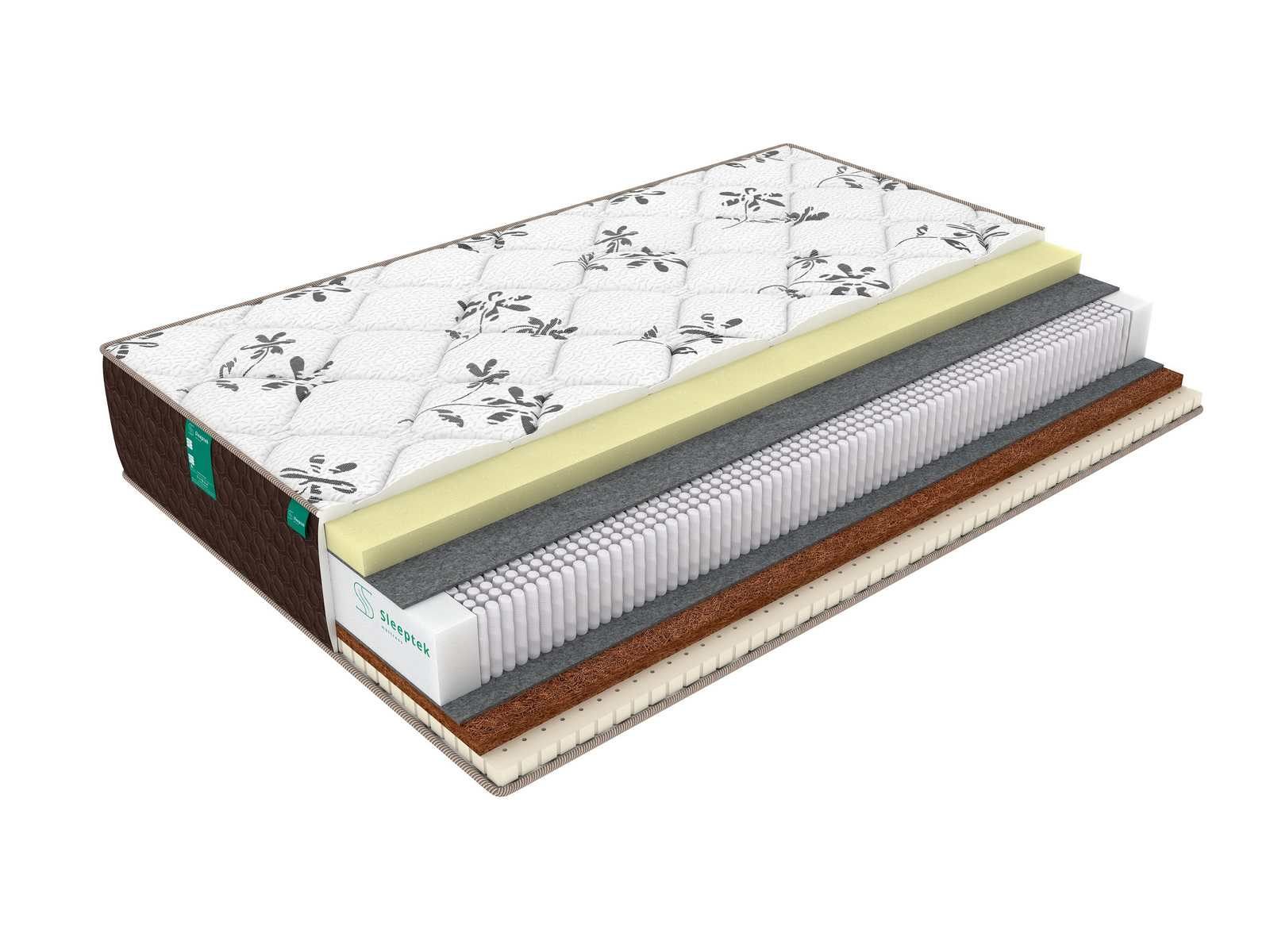 Блок пружин отделен от наполнителей слоями термовойлока,он защищает наполнители от контакта с пружинами и продлевает срок службы матраса.