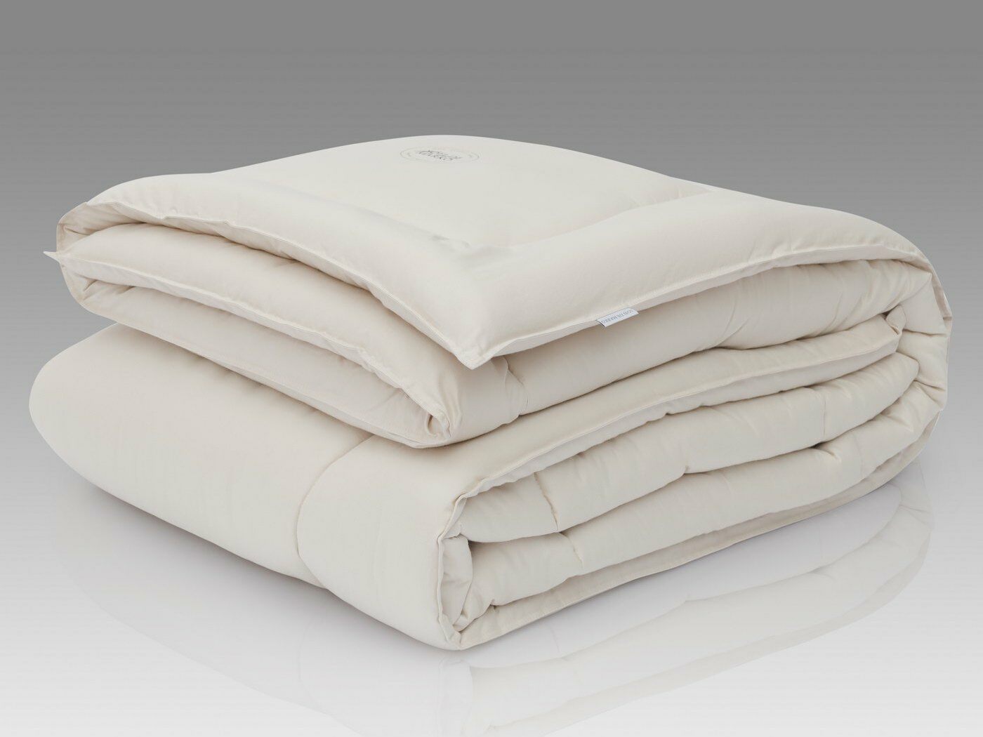 Пошив одеяла с двойной отстрочкой по периметру и термотрасферной печатью в правом нижнем углу, украшенные брендированной фурнитурой.