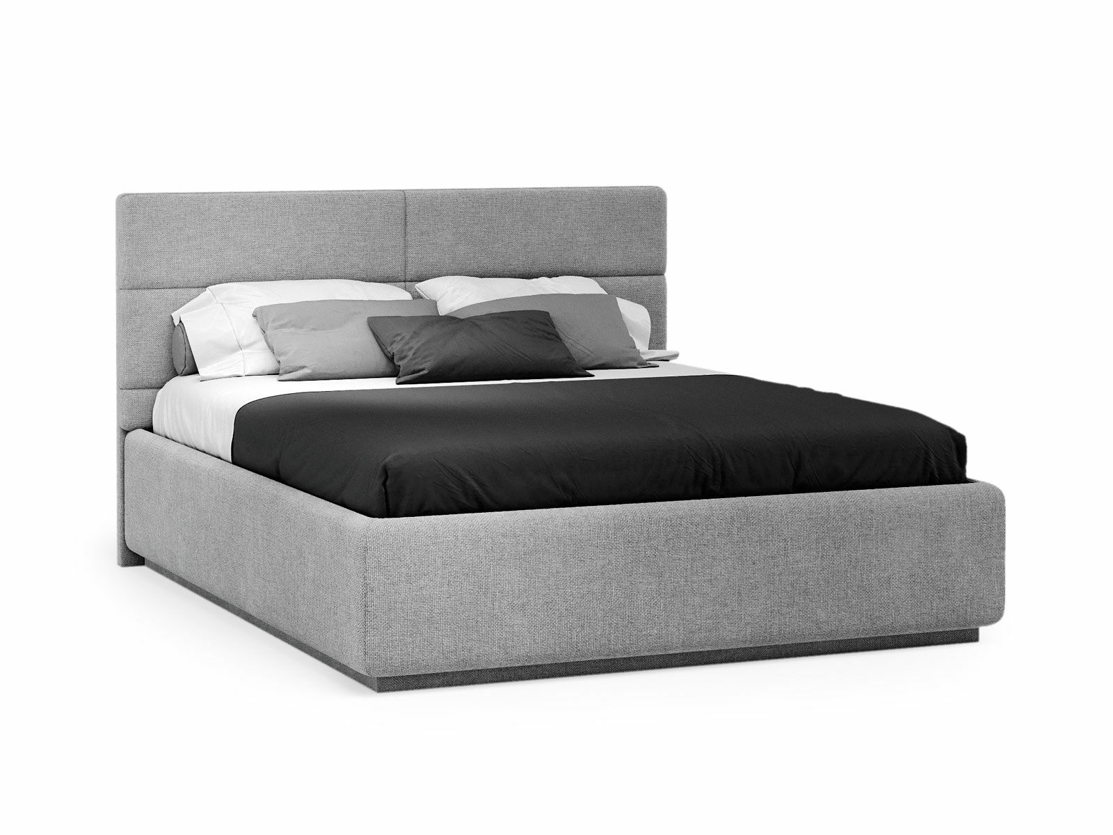 Кровать укомплектована IQ с подъемным механизмом и ящиком для белья без дна (дополнительная платная опция - дно к ящику IQ из HDF (ХДФ). Каркас кровати на цоколе, декоративный чехол на цоколе съёмный. Глубина ящика для белья - 30 см, без ограничения нагрузки на ящик.