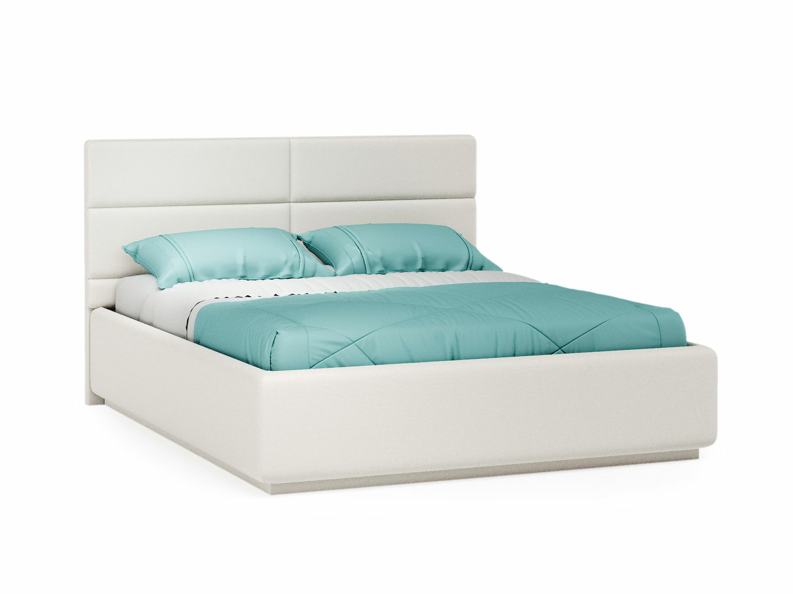 Изголовье состоит из мягких выпуклых панелей прямоугольной формы, идеально и ровно обтянутых экокожей, собранных в единый рисунок - полностью ручная работа!