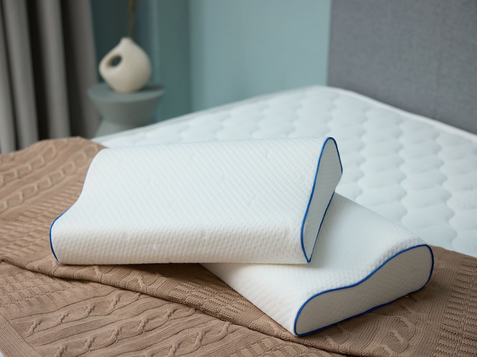 Ортопедическая форма подушки создана с учётом человеческой анатомии. Под шеей и над головой оказывается валики, которые обеспечивают правильное анатомическое положение головы и позвоночника.