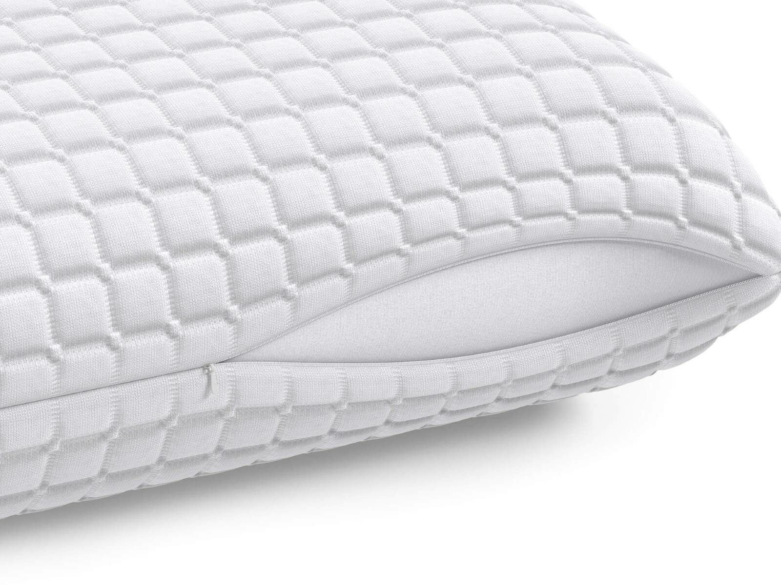 Подушка с эффектом памяти memory foam классической формы. Благодаря своей пористости материал подушки улучшает циркуляцию воздуха, а за счет материала с эффектом «памяти» memory foam подушка идеально повторяет очертания головы и шеи. Подушка поставляется в съемной трикотажной наволочке на молнии.