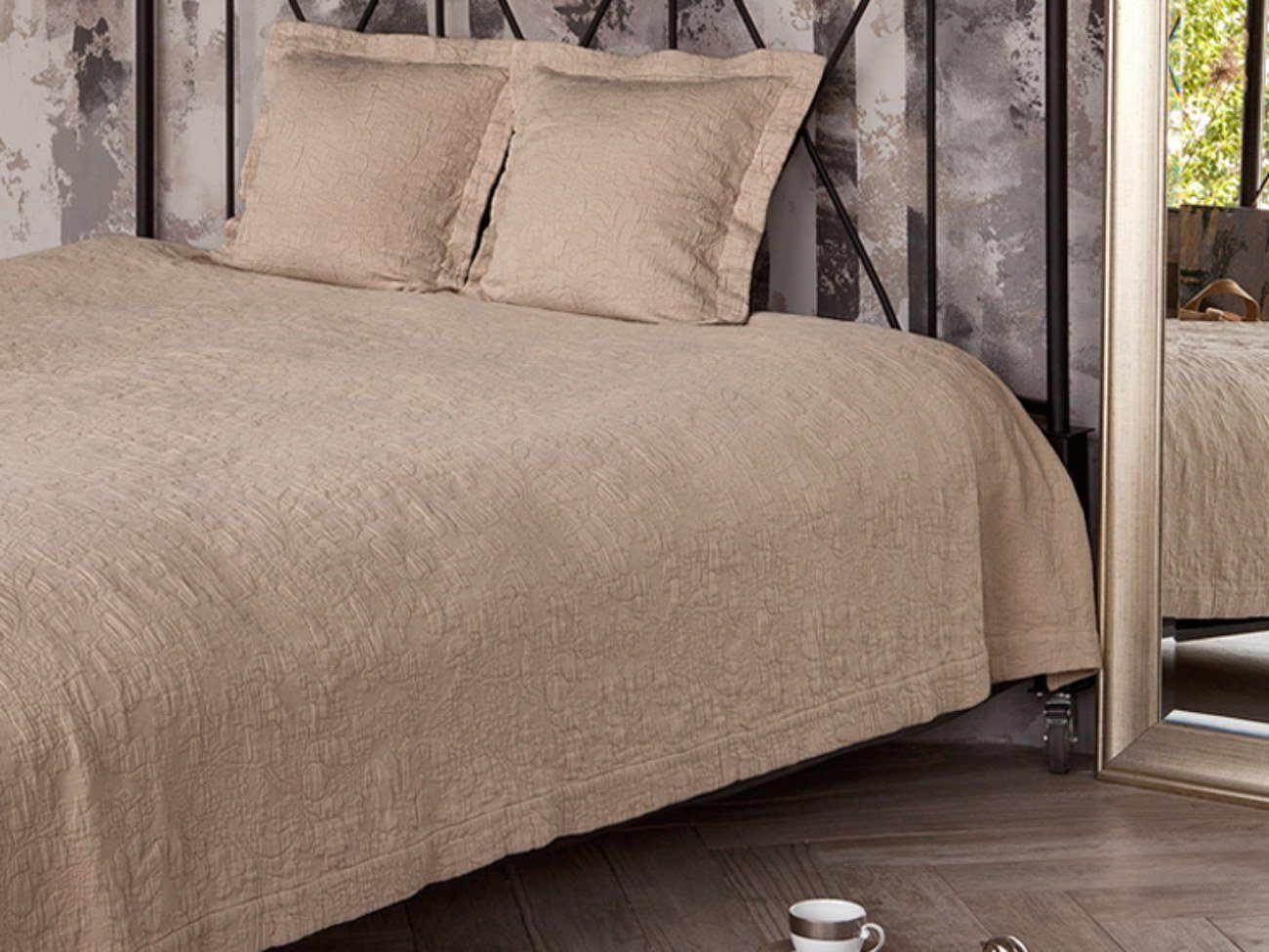 "BISCUIT" – плотное покрывало из 100% хлопка. Рисунок абстрактный, цветочный, узор рельефный. Покрывало выглядит нежно, подойдет для гостиной, так и для спальни. В сочетании с декоративными наволочками из этой коллекции образует нарядный комплект, который будет гармонично и аккуратно смотреться в любом интерьере.