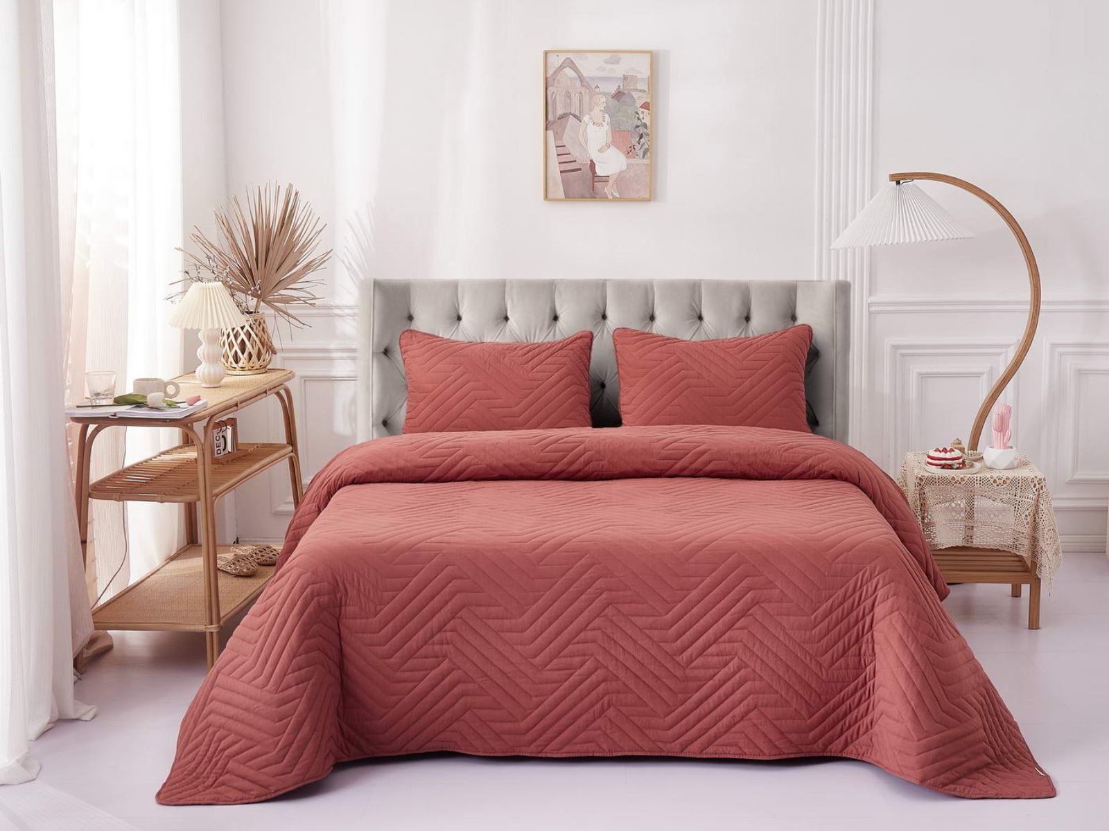 Покрывала Мориц украшены лаконичным геометрическим орнаментом. Сочетание углов и линий органично впишется в самые разнообразные интерьерные стили. Покрывала выполнены в восьми оттенках: крем, пудра, антрацит, бежевый, серый, шоколад, терракот, синий. Такая цветовая гамма не оставят никого равнодушным.