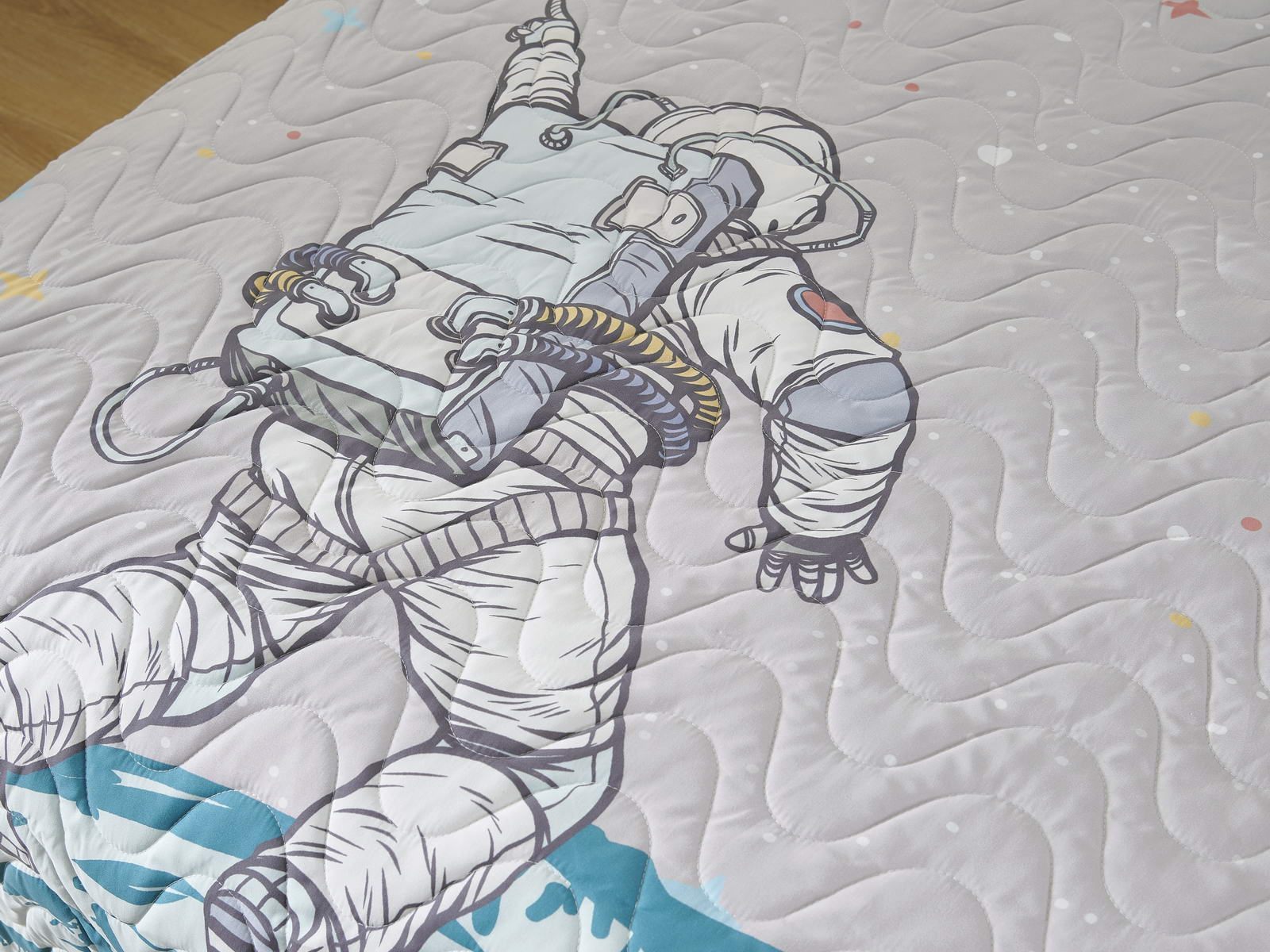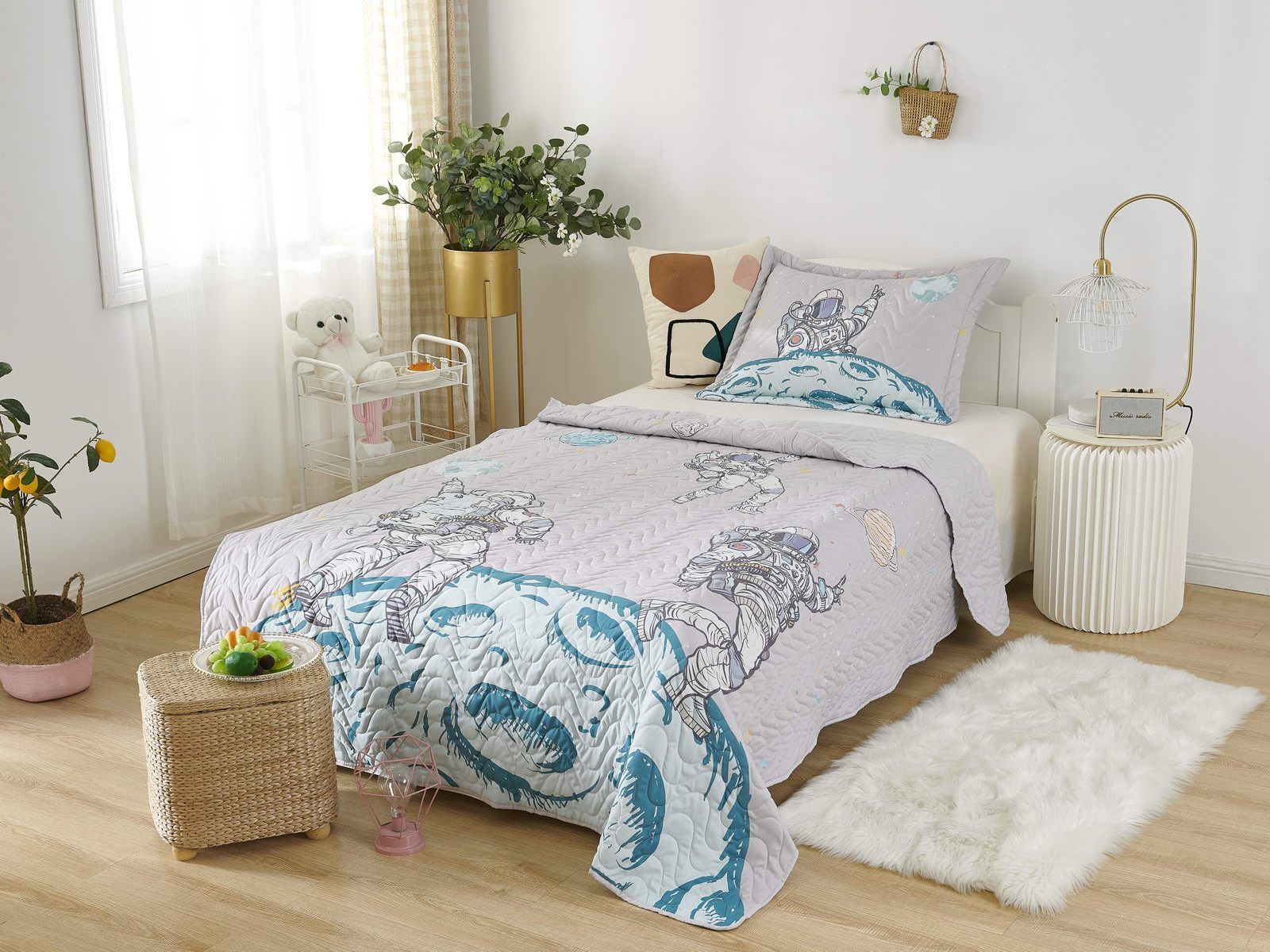 Детские покрывала - это особая забота об уюте и комфорте ребенка. Красивое, стеганое покрывало коллекции «Sunny day» придаст любой детской спальне яркую индивидуальность. Волнистые стежки делают изящные покрывала еще более выразительными и изящными. К ним в комплекте идут наволочки, у них есть интересная особенность, которая непременно понравится ребенку– небольшие ушки.