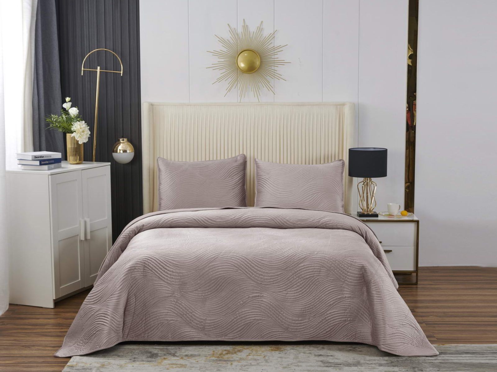 Традиционно в японском саду камней линии на песке символизируют отсутствие хаоса и спокойствие. Такой плавный узор напоминает размеренные потоки воды, которые оказывают на психику благоприятный эффект. Изящное покрывало Жизель с рисунком в виде подобных линий поможет обрести умиротворение, ведь в современном мире так важно уметь привести мысли в порядок. Помимо положительного воздействия на нервную систему, рисунок в виде волны придаст изысканности и утонченности Вашему интерьеру.