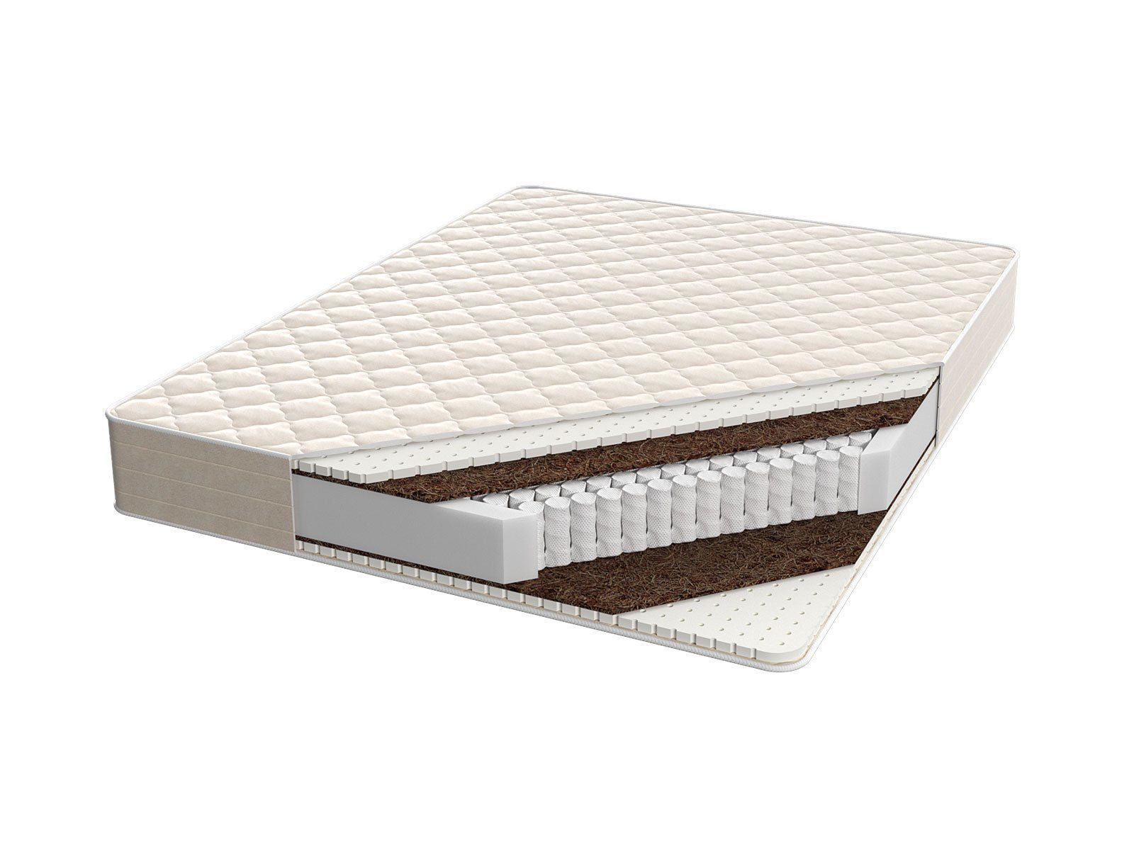 Сочетание латексной пены и кокосовой койры определяет высокие анатомические свойства матраса и его среднюю жесткость, а также высокую комфортность.