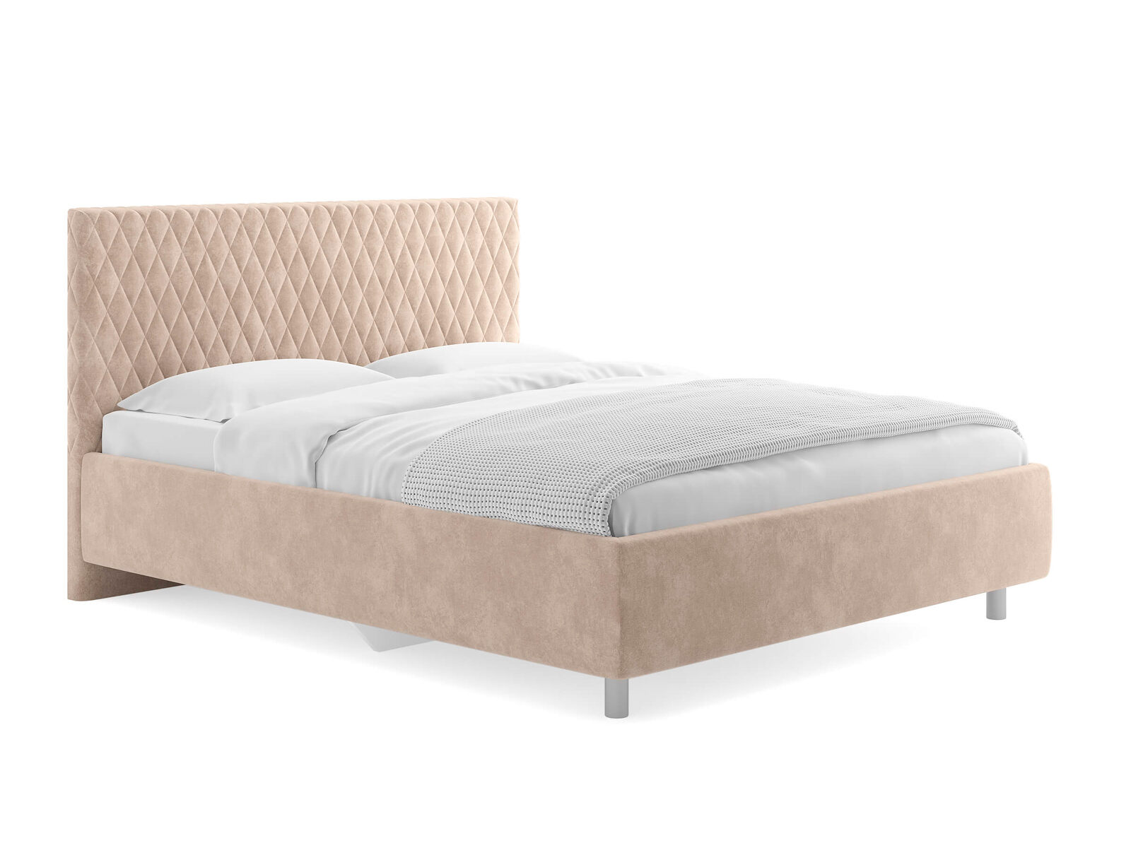 Прямую форму изголовья декорирует мягкий чехол. Чехол изголовья простеган ромбами среднего размера, что добавляет модели объем и подчеркивает выразительность. Кровать Stella лаконична, нейтральна, не берет на себя много внимания поэтому органично впишется в большинство современных интерьеров. Увеличенный просвет от пола позволяет облегчить уборку под кроватью, в том числе роботом–пылесосом. Царги кровати выполняются по технологии съемного чехла.