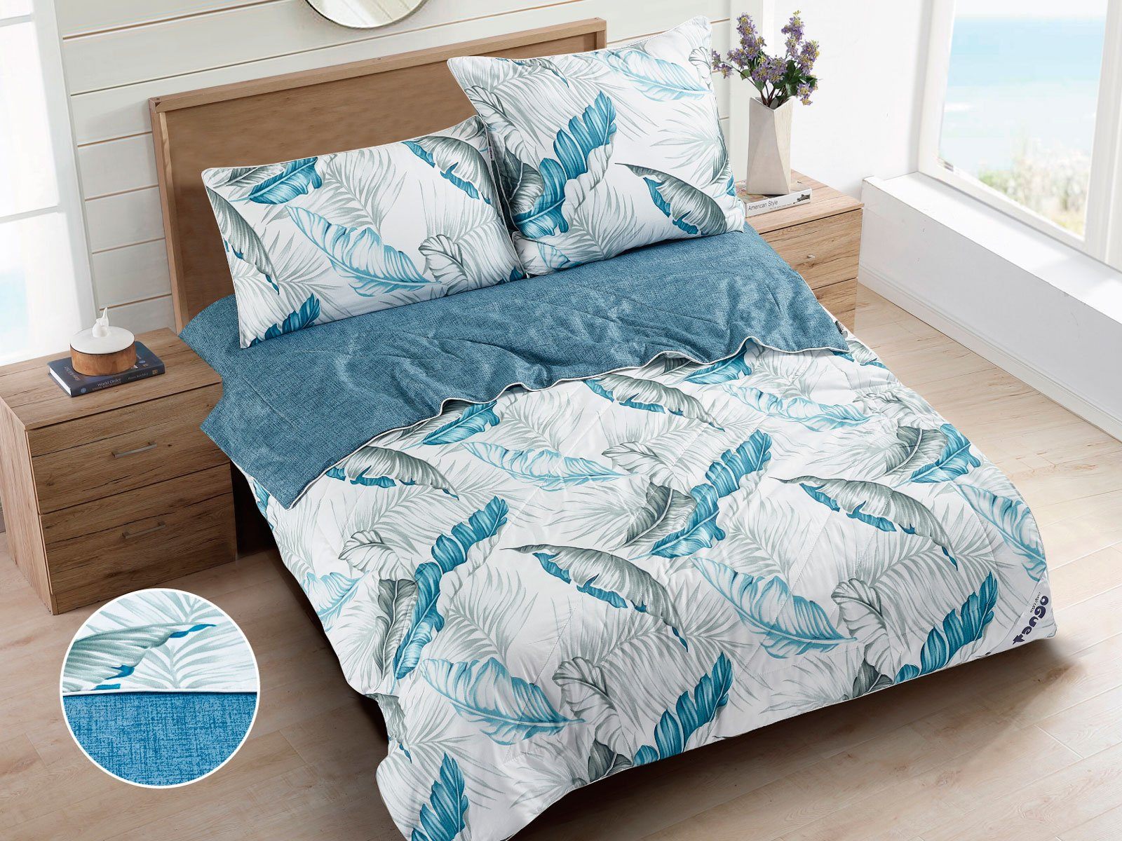 В данный комплект вместо пододеяльника входит облегченное одеяло. Комплект подойдет тем, кто устал от мучительного натягивания пододеяльников на одеяло.